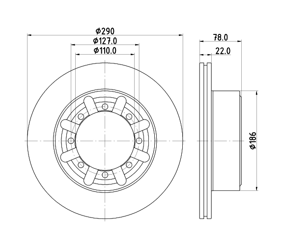 - Hrúbka brzd. kotúča (mm):22