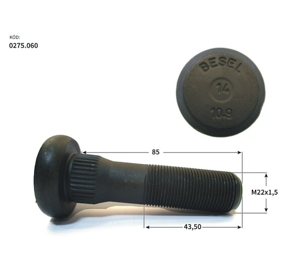 Skrutka kola DAF M22x1,5x85x43,5mm